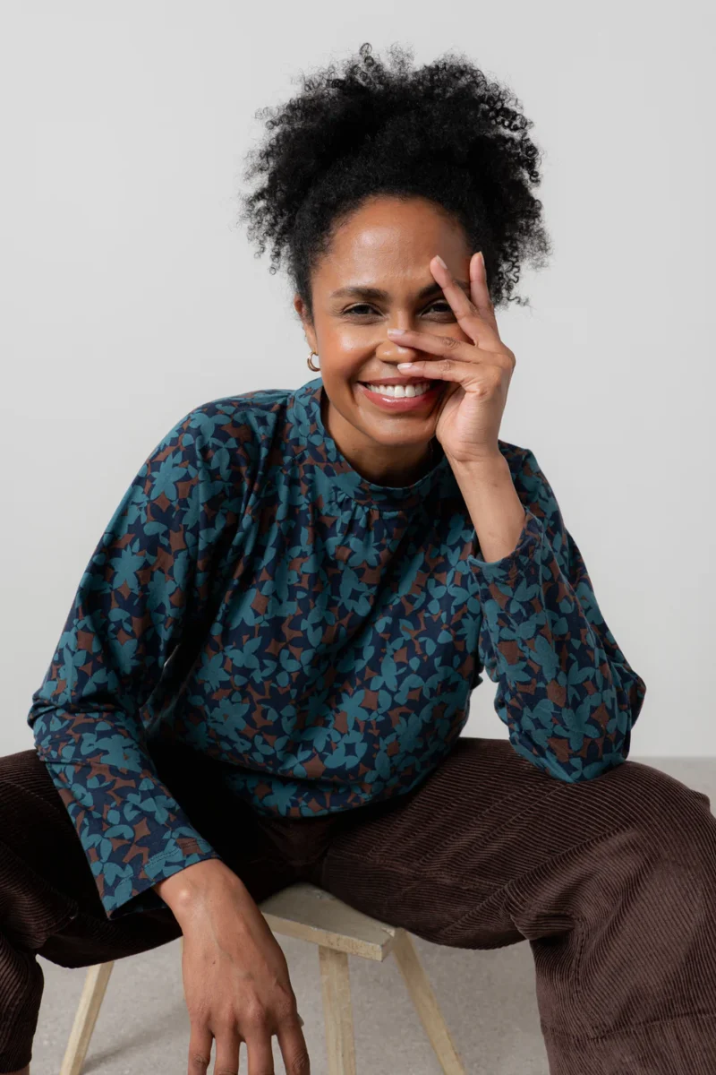 The ultimate in comfortable elegance, the Bayberry top is crafted from a soft stretch cotton jersey with a bespoke print.